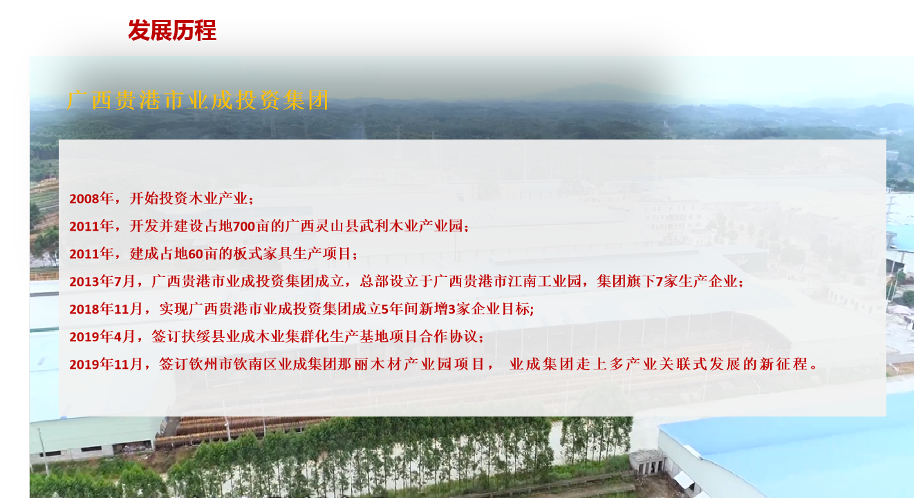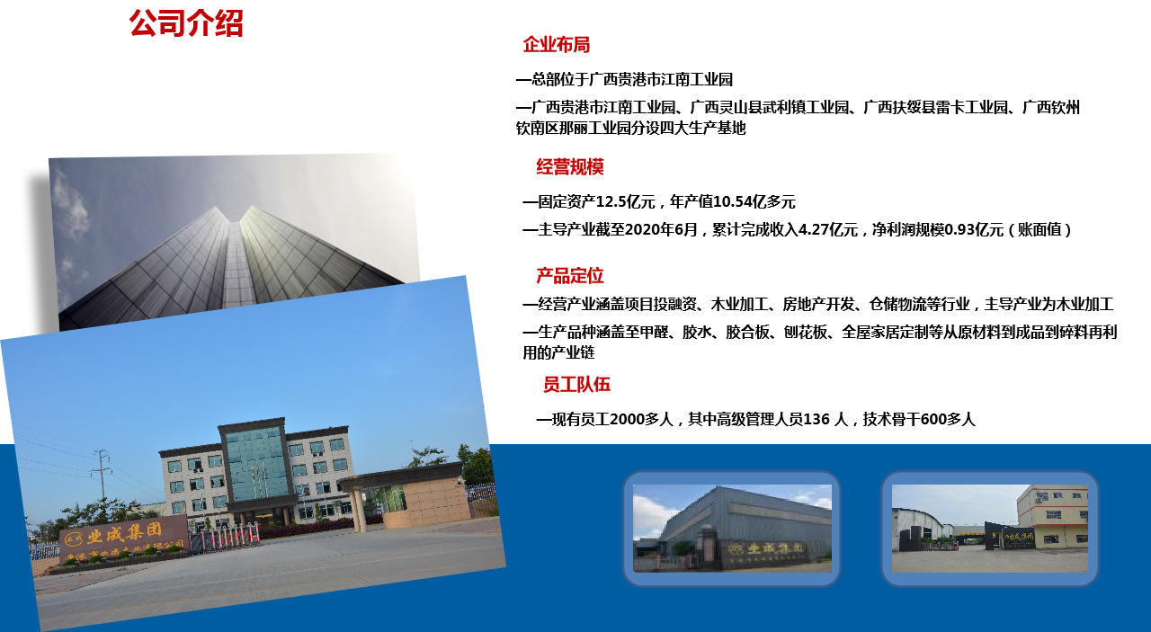 开云手机在线登录(以下简称:业成集团)成立于2013年7月,总部设在广西贵港市江南工业园,两大生产基地分布在广西贵港市江南工业园、广西灵山县武利镇木业产业园,员工2000多人,固定资产12.5亿元,年产值10亿多元,经营产业涵盖项目投融资、木业加工、房地产开发、仓储物流等行业,主导产业为木业加工。...